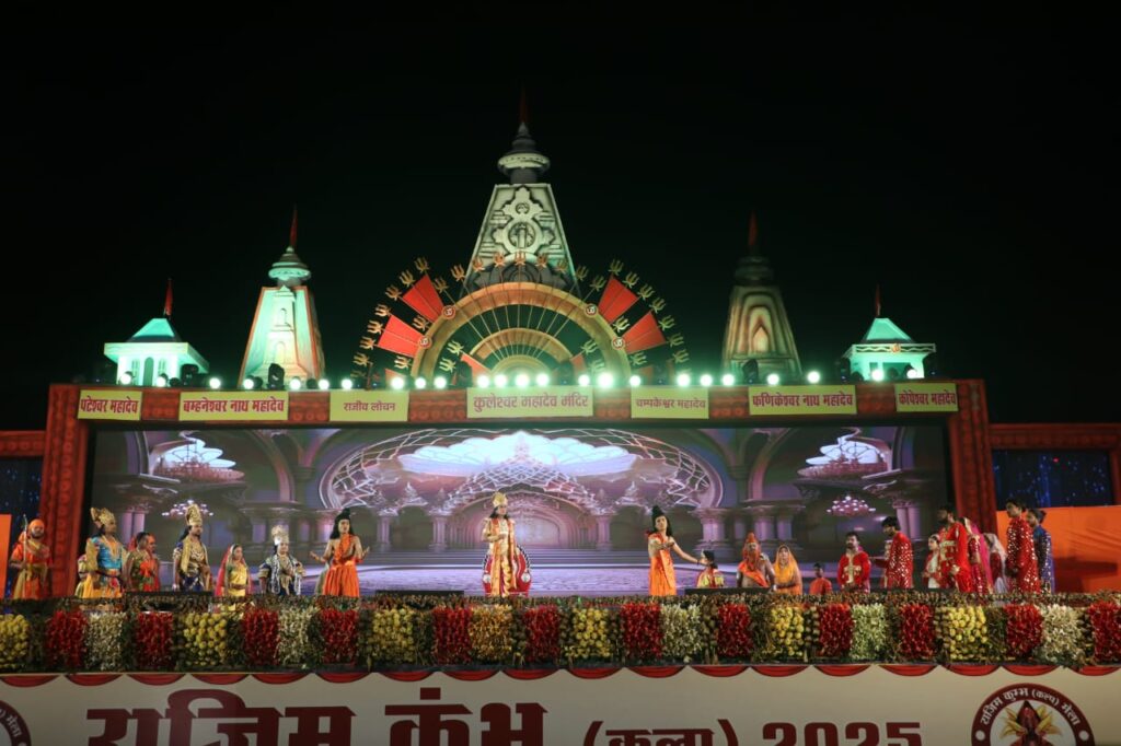 राजिम/मगरलोड – राजिम कुंभ कल्प के सांस्कृतिक मंच में 9वें दिन उत्तर रामायण पर आधारित लाइट एंड साउंड शो कार्यक्रम ने दर्शकों को रोमांचित कर दिया। मंच पर बहुत ही सुंदर ढंग से लाइट एवं साउंड के माध्यम से उत्तर रामायण को जीवंत रूप से दर्शाया गया। कार्यक्रम में 50 से अधिक कलाकारों ने प्रस्तुति दी। जिसमें भगवान श्री राम एवं उनके सुपुत्र लव-कुश के बीच संवाद को शानदार तरीके से दर्शाया गया। अवध में आकर लव-कुश ने गीत के माध्यम से राम चरित्र की व्याख्या की। राम द्वारा सीता त्याग के पश्चात उस दुख से उबरने के लिए अश्वमेघ यज्ञ की शानदार प्रस्तुति दी गई। जिसे देखकर दर्शक भावुक हो गए।