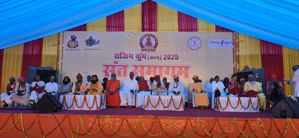 राजिम/मगरलोड – राजिम कुंभ कल्प के संत समागम स्थल पर मंगलवार को संत सम्मेलन का आयोजन किया गया। इस कार्यक्रम में विभिन्न क्षेत्रों से पहुंचे संतों ने अपने-अपने विचार रखे। अमरकंटक आश्रम से पहुंचे महंत प्रभाजन मुनी उदासीन ने संतों सहित उपस्थित जनता एवं संतो को संबोधित करते हुए कहा कि गंगा, गीता और गाय की रक्षा ही धर्म है। सनातन धर्म की रक्षा के लिए गीता, गंगा और गाय की रक्षा जरूरी है।
