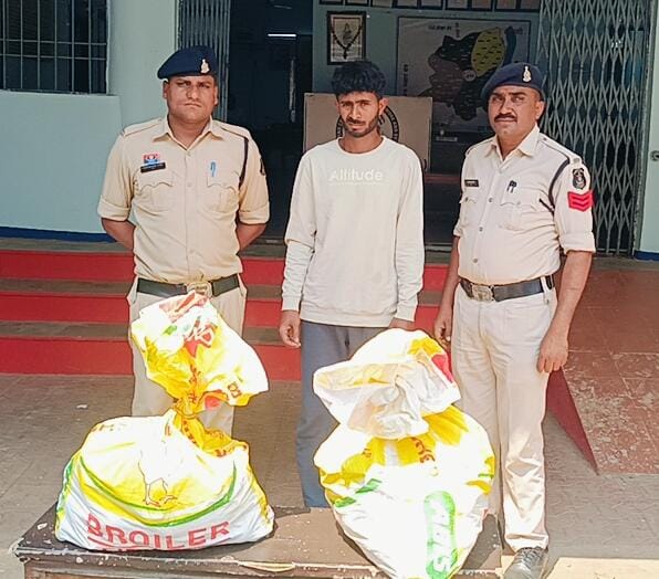 मगरलोड/धमतरी – धमतरी पुलिस थाना कुरूद को मुखबिर से सूचना मिली की एक व्यक्ति ग्राम मेंडरका भोथली,नया तालाब सियार के पास बोरी के अंदर में अवैध रूप से शराब रखकर बिक्री कर रहा है की सूचना पर हमराह कुरूद पेट्रोलिंग द्वारा ग्राम मेंडरका भोथली,नया तालाब सियार के पास जाकर घेराबंदी कर एक व्यक्ति को पकडकर उनका नाम पता पूछने पर अपना नाम मिथिलेश उर्फ राजू चंद्राकर पिता अलख राम चंद्राकर उम्र 25 वर्ष साकीन ग्राम मेंडरका का रहने वाले बताया, जो दो सफेद पीला रंग के प्लॉस्टिक बोरी के अंदर तलाशी लेने पर बोरी के अंदर 137 पौवा मशाला शराब एवं 11 पौवा प्लेन शराब सीलबंद देशी प्लेन शराब प्रत्येक में 180-180 एम.एल.भरी हुई कुल 26.640 बल्क लीटर कीमती 16,060/- रूपये एवं बिक्री रकम 1200/- रूपये कुल जुमला 17,260/- रूपये को गवाहों के समक्ष जप्त कर आरोपी के विरूद्ध थाना कुरुद में अप० क्र०-77/25 धारा 34 (2) आबकारी एक्ट का अपराध पंजीबद्ध कर आरोपी