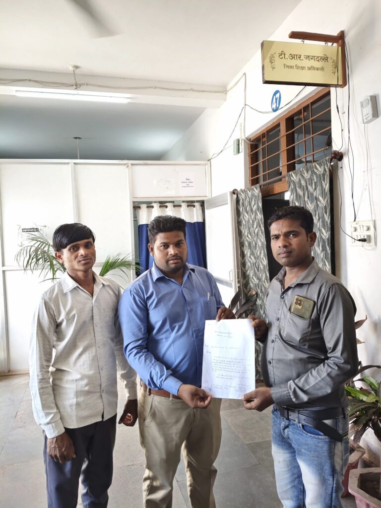जिला शिक्षा अधिकारी से मार्च माह के वेतन के लिए मिले मगरलोड स्कूल सफाई कर्मचारी
