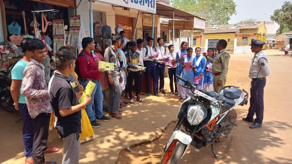 धमतरी पुलिस यातायात द्वारा दी गई ग्रामीणजन, एवं छात्र-छात्राओं को यातायात नियमों की जानकारी