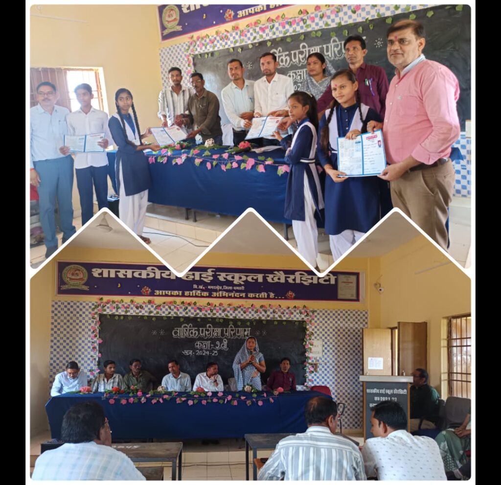 धमतरी/मगरलोड – विकासखंड मगरलोड के शासकीय हाई स्कूल खैरझिटी में कक्षा 9वी में कुल 65 विद्यार्थियों ने परीक्षा दिए । जिसमें से 38 छात्र-छात्राओं ने सफलता अर्जित किये । इस प्रकार परीक्षा परिणाम 58.46% रहा । कु. कुमकुम साहू अरौद एवं करुणा साहू खैरझिटी दोनों ने 97.67% अंक अर्जित कर कक्षा में प्रथम स्थान प्राप्त किये । द्वितीय 89.43% चेमन कुमार साहू रांकाडीह एवं तृतीय 85.67% कु. लक्ष्मी साहू खैरझिटी ने प्राप्त किया । परीक्षा परिणाम घोषणा के अवसर पर शाला प्रबंधन समिति अध्यक्ष लेखन साहू, सांसद प्रतिनिधि रंजीत कश्यप ,जनपद सदस्य सरिता रंजीत कश्यप ,सदस्य ओमप्रकाश कंवर , महेंद्र साहू , अमित कुमार साहू पंच, संकुल प्राचार्य अशोक पटेल एवं संस्था के प्राचार्य समस्त स्टाफ सहित छात्र-छात्राएं उपस्थित रहे । कार्यक्रम में उपस्थित सभी अतिथियों एवं शिक्षकों ने उत्तीर्ण छात्र छात्राओं को बधाई दिए साथ ही अनुत्तीर्ण एवं पूरक के छात्र-छात्राओं को पुन: प्रयास कर अच्छी सफलता के लिए प्रेरित किया ।