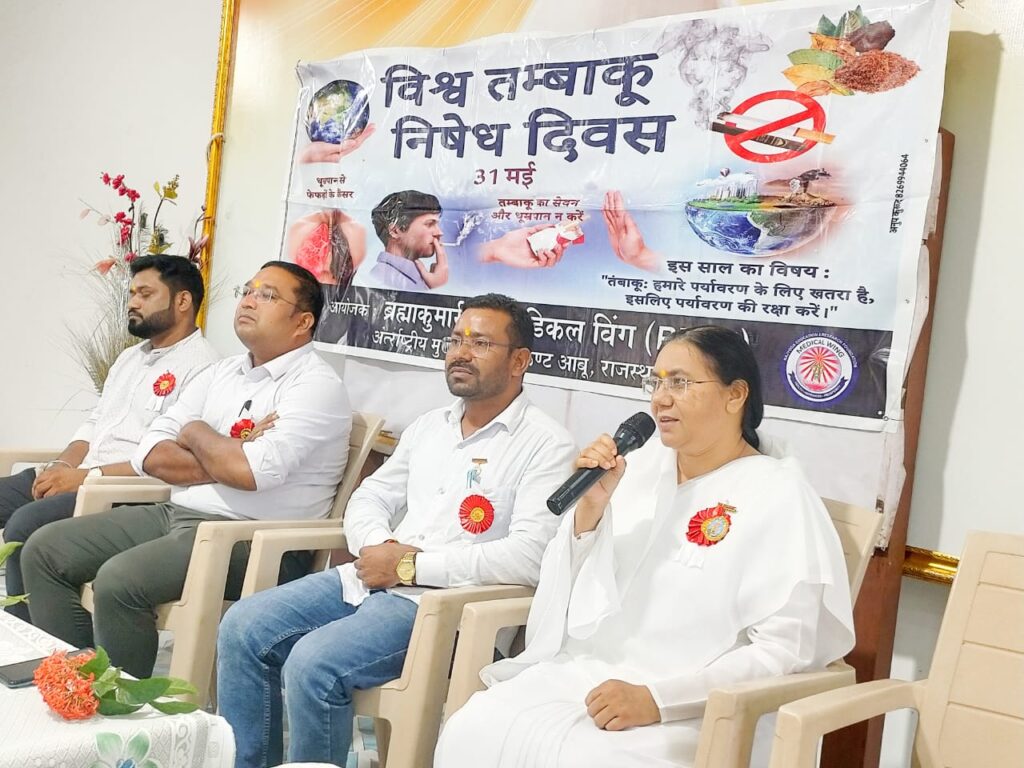 ब्यसनों से मुक्त होने का एक ही उपाय है सोच बदलो, नजरिया बदलो। डॉक्टर चक्रधारी ने कहा कि शासन की ओर से प्रत्येक शासकीय संस्थाओं से लगभग 200 मीटर की दूरी तक नशा हेतू प्रतिबंधित क्षेत्र घोषित किया गया है। शासन की ओर से नशा मुक्ति संबंधी बहुत से प्रयास किये जा रहे हैं । नशा करने वाले व्यक्ति दो स्तर के होते हैं प्राइमरी स्मोकर जो नशा का सेवन करते हैं व सेकेंडरी स्मोकर जो नशा का सेवन नहीं करते हैं । अंत में सेवा केंद्र संचालिका बीके अखिलेश दीदी ने कहा कि जागरूकता ही सुरक्षा है । नशे का सेवन भले ना करें लेकिन इसके दुष्प्रभाव के बारे में जानकारी भी होना जरूरी है। अगर हमें व्यसन मुक्त समाज बनाना है तो सबसे पहले हमें अपने मन को कंट्रोल करना होगा जो कि राजयोग से सहज ही संभव है । राजयोग मन को परमात्मा से जोड़े रखता है । अतः हम सबको राजयोग सीख कर स्वस्थ समाज का निर्माण करते हुए तन-मन-धन से वतन की सेवा करना चाहिए । संस्था की ओर से अतिथियों को प्रतीक चिन्ह के रूप में सौगात भेंट किया गया । कार्यक्रम में संस्था से जुड़े सैकड़ो भाई बहन उपस्थित रहे। कार्यक्रम का संचालन बी के दुलार भाई ने किया ।