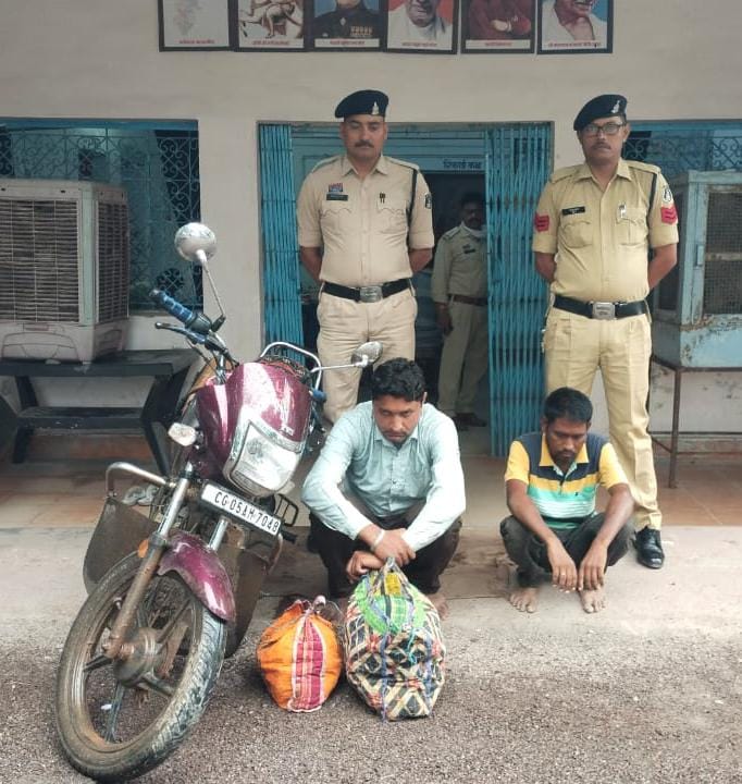 धमतरी पुलिस,अर्जुनी थाना को मुखबिर से सूचना प्राप्त हुई कि दो व्यक्ति हरफतराई मुख्य नहर मार्ग की ओर से टीव्हीएस रेडियन मोटरसाइकिल में अवैध रूप से शराब लेकर बिक्री हेतु परिवहन कर रहे हैं। सूचना के आधार पर तत्काल घेराबंदी कर पुलिस ने संदिग्ध युवकों को रोका जिसने अपना नाम टिकेश्वर साहू और दूसरे ने कृत राम उर्फ प्रित यादव बताया,जांच के दौरान दोनों के पास से निम्न सामग्री बरामद की गई 70 पौवा प्लेन देशी शराब क़ीमत 5,600,10 पौवा मसाला देशी शराब-क़ीमत 1,000,जब्त कुल शराब की क़ीमत 6,600 रूपये परिवहन में प्रयुक्त टीव्हीएस रेडियन मोटरसाइकिल-क़ीमत 50,000 रूपये कुल ज़ब्ती 56,600 रूपये आरोपीगण का नाम टिकेश्वर साहू पिता रामविलास साहू उम्र 37 वर्ष साकीन डोंडकी,थाना अर्जुनी, कृतराम उर्फ प्रित यादव पिता फिरता राम यादव उम्र 35 वर्ष ,साकीन, अर्जुनी,जिला धमतरी (छ.ग.)