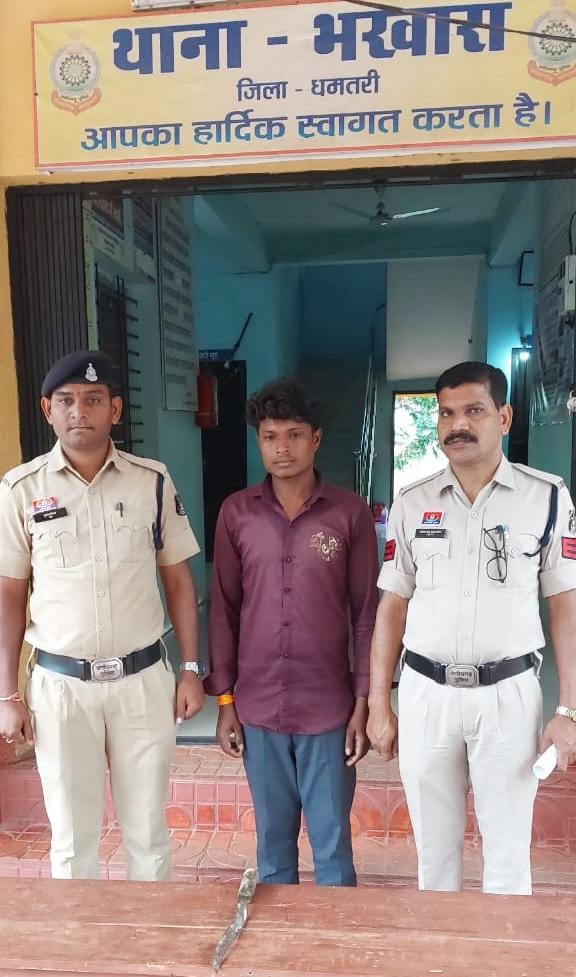 धारदार हथियार लहराकर लोगों को डरा धमका रहा था युवकधमतरी पुलिस थाना भखारा ने की त्वरित कार्यवाही