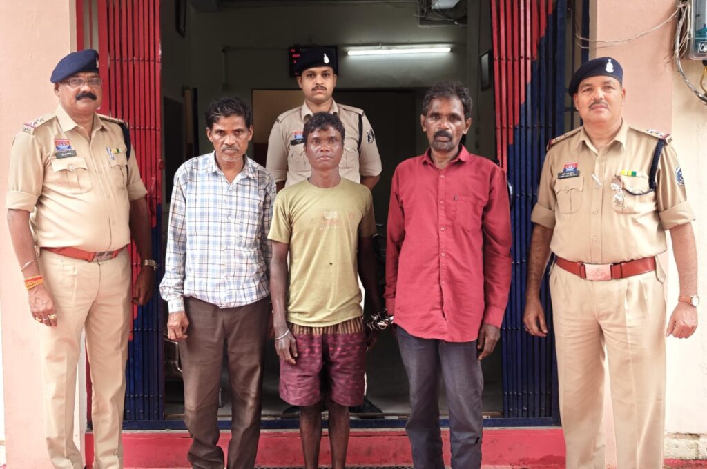 गिरफ्तार आरोपीगण का पता कश्यप पटेल, पिता फागुराम पटेल (उम्र 54 वर्ष)निवासी – ग्राम अड़ेगा, थाना केशकाल, जिला कोण्डागांव (छ.ग.), विल्लू कोर्राम, पिता मनसाय कोर्राम (उम्र 29 वर्ष)निवासी- ग्राम छींदपारा, थाना माकड़ी, जिला कोण्डागांव (छ.ग.) गणेश कुमार भारद्वाज, पिता स्व. गुहाराम भारद्वाज (उम्र 57 वर्ष)निवासी- ग्राम जरनडीह, थाना केशकाल, जिला कोण्डागांव (छ.ग.)