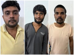 जप्त सामग्री अमन चंद्राकर के कब्जे से ●हेरोइन (शुद्ध 2.18 ग्राम)- 21,000 रूपये ●नकद 1,500 रूपये ●बाइक (पल्सर CG 05 AQ 8947) – 45,000 रूपये● OPPO मोबाइल — 7,000 रूपये,दुष्यंत चंद्राकर के कब्जे से●हेरोइन (शुद्ध 1.83 ग्राम) — 18,000 रूपये●नकद 1,000 रूपये●VIVO मोबाइल — 6,000 रूपये ● कुल बरामद हेरोइन – 4.85 ग्राम (कीमत लगभग 39,000 रूपये )● कुल जब्त संपत्ति – 91,500 रूपये से अधिक● डीलिंग और नेटवर्क का खुलासा●अमन ने 7,900 रूपये स्कैन कर भेजे, दुष्यंत ने 8,000 रूपये नकद दिए।●दो झिल्लियों में से एक अमन ने अन्य को देना, दूसरी दुष्यंत ने मेहुल चंद्राकर को देना स्वीकार किया।●तीनों ने खुद भी नशे का सेवन करना स्वीकार किया।▪️गिरफ्तार आरोपी का नाम पता● (01) अमन चंद्राकर, उम्र 27, सरोजनी चौक, कुरूद● (02) दुष्यंत चंद्राकर उर्फ सोनू, उम्र 26, ग्राम भोथली, कुरूद,कुरूद थाना कुरूद,जिला धमतरी (छ.ग.)● (03) मेहुल उर्फ अणांक चंद्राकर, उम्र 26, बस स्टैंड, सांधा चौक, कुरूद थाना कुरूद,जिला धमतरी (छ.ग.)गिरफ्तार व पूछताछ में अपराध स्वीकार)विधिक कार्यवाही●अपराध क्रमांक: 196/2025●धारा: 21(क), 29 NDPS Act●तीनों आरोपी न्यायिक रिमांड पर जेल भेजे गए