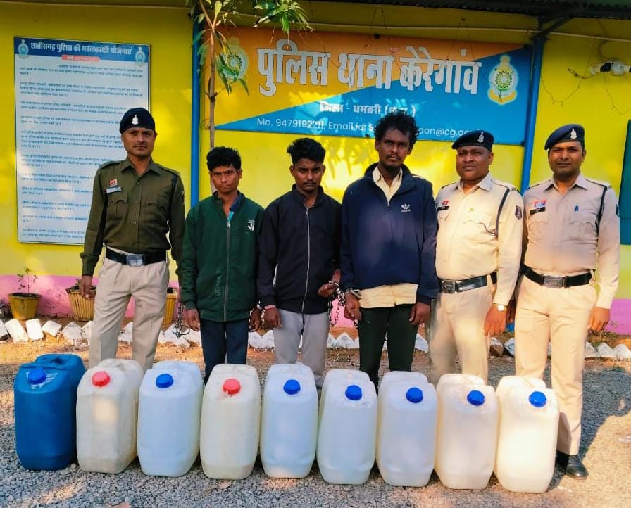धमतरी/मगरलोड – जिले में अवैध शराब कारोबार पर लगाम कसने हेतु एसपी धमतरी द्वारा समस्त थाना एवं चौकियों को विशेष अभियान चलाने के निर्देश दिए गए हैं। निर्देशों का प्रभावी पालन करते हुए थाना केरेगांव की टीम ने एक महत्वपूर्ण कार्यवाही को अंजाम दिया और बड़ी मात्रा में अवैध देशी कच्ची महुआ शराब जब्त की।