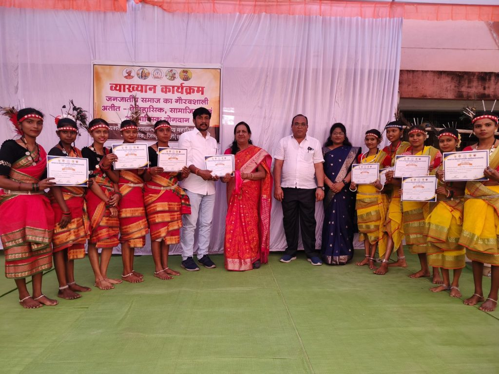 कार्यक्रम में जनजाति गौरव माह के अंतर्गत हुए विभिन्न कार्यक्रम जिसमें रंगोली में प्रथम स्थान कैलाश कुमार, द्वितीय स्थान मोना यादव व योगिता साहू ने प्राप्त किया, निबंध प्रतियोगिता में मानसी ने प्रथम, वीना साहू ने द्वितीय स्थान प्राप्त किया चित्रकला में काजल ने प्रथम व कैलाश कुमार ने द्वितीय स्थान प्राप्त किया। इन्हें प्रतीक चिन्ह व प्रमाण पत्र देकर पुरस्कृत किया गया।