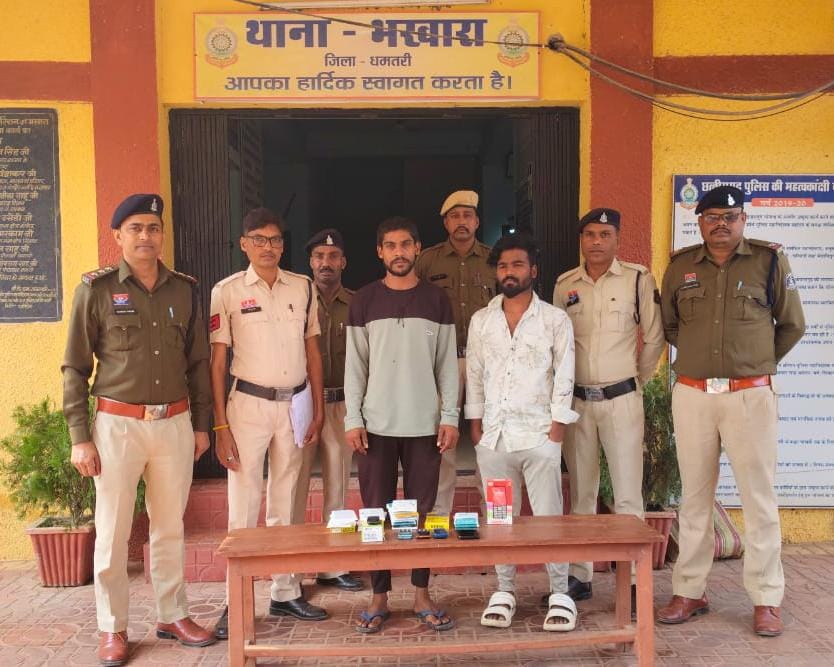 सिलीडीह मोबाईल दुकान में चोरी दो आरोपी गिरफ्तार, चोरी का माल बरामद, भखारा पुलिस ने किया पर्दाफाश