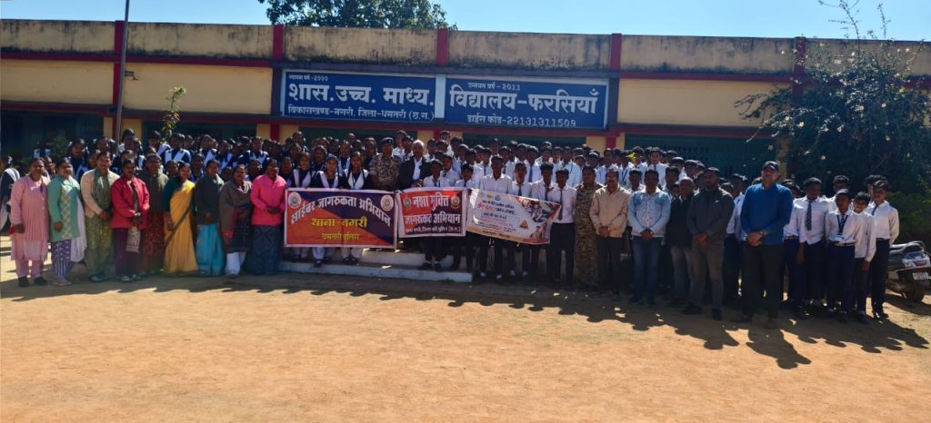 शासकीय उच्चतर माध्यमिक विद्यालय फरसियां में पुलिस की जागरूकता पहल – सुरक्षित सड़क, नशामुक्त जीवन और सायबर सतर्कता का संदेश