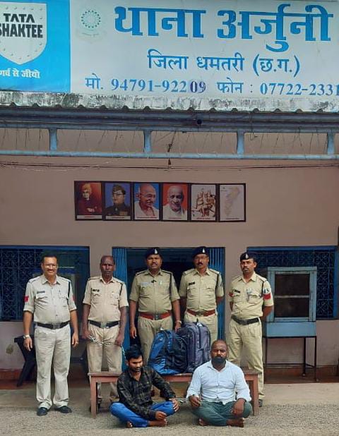 दो अन्तर्राज्यीय गांजा तस्करों को धमतरी पुलिस के अर्जुनी थाना एवं सायबर टीम ने किया गिरफ्तार
