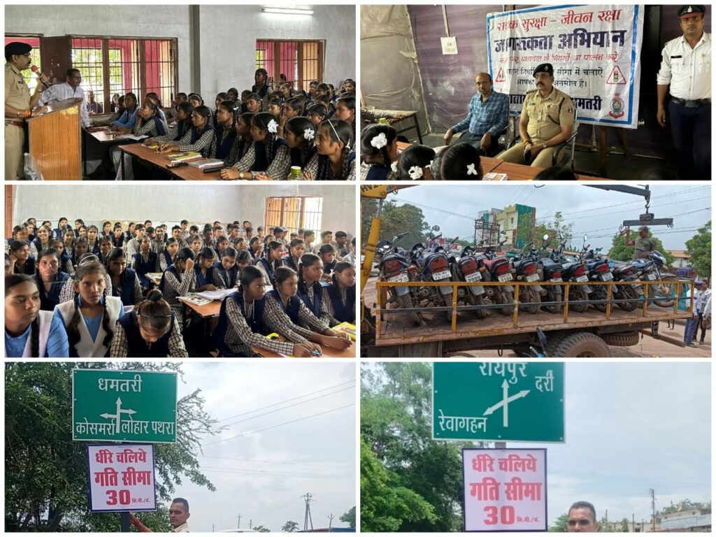 धमतरी/मगरलोड – धमतरी पुलिस से डीएसपी. ट्रैफिक श्री मणिशंकर चंद्रा एवं यातायात स्टॉफ द्वारा स्कूल छात्र-छात्राओं को यातायात नियमों के प्रति जागरूक करने के उद्देश्य से शा०उच्च० माध्य०विद्या० संबलपुर में यातायात पाठशाला का आयोजन किया गया।