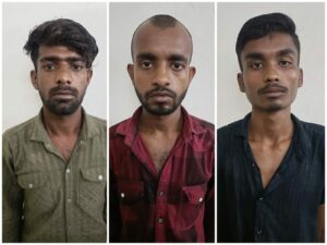 सागर निर्मलकर पिता नरोत्तम निर्मलकर उम्र 21 साल सा० दुर्गानगर अम्लेश्वर जिला दुर्ग, सूरज साहू पिता नंदकुमार साहू उम्र 25 साल साकिन दुर्गानगर अम्लेश्वर जिला दुर्ग, आशीष उर्फ सन्नी देवांगन पिता गजानंद देवांगन उम्र 21 साल साकिन दुर्गानगर अम्लेश्वर जिला दुर्ग