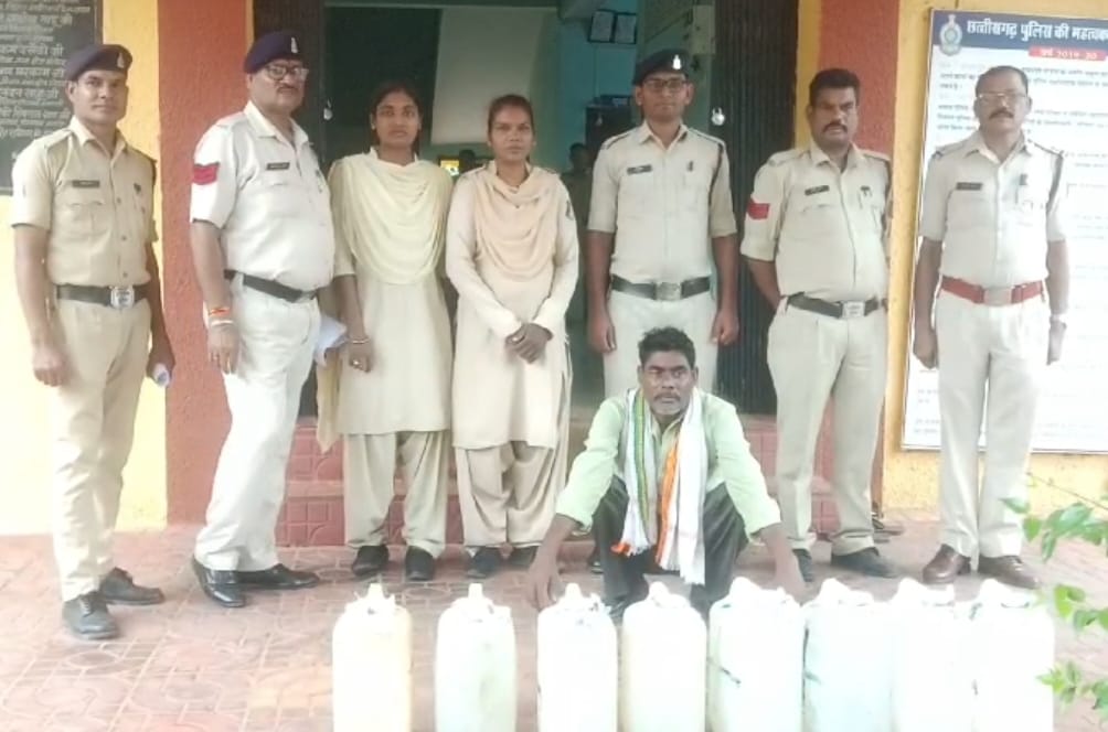 धमतरी/मगरलोड – धमतरी पुलिस,थाना भखारा को दिनांक 01.08.24 को मुखबिर से सूचना मिली कि ग्राम कोपेडीह निवासी राजू बघेल अवैध रूप से हाथ भट्टी कच्ची महुआ शराब बिक्री कर रहा है कि सूचना पर तत्काल एसडीओपी. कुरूद एवं थाना प्रभारी भखारा सहित हमराह स्टॉफ एवं गवाहन के मुखबिर के बताये स्थान में जाकर घेराबंदी कर राजू बघेल को 08 नग प्लास्टिक सफेद रंग के जरकिन में अवैध रूप से शराब बिकी करते पकडे गये जिसे नाम पता पूछने पर अपना नाम राजू बघेल पिता स्व० बिसरु राम बघेल उम्र 49 वर्ष साकिन कोपेडीह से कच्ची हाथ भट्टी से निर्मित महुआ शराब 07 नग 10-10 लीटर वाली सफेद रंग के प्लास्टिक जरकिन के अंदर में 10-10 लीटर शराब भरी हुई एवं 01 नग 10 लीटर वाली सफेद रंग की प्लास्टिक जरकिन के अंदर 01 लीटर कच्ची हाथ भट्टी महुआ शराब भरी हुई कुल जुमला 71 लीटर कीमती 7100 रूपये एवं शराब बिकी रकम 300 रुपये जुमला 7400 रुपये रखे मिला जिसे आरोपी के कब्जे से जब्त कर पुलिस टीम द्वारा कब्जे में लिया गया एवं आरोपी के विरुद्ध थाना भखारा में धारा 34 (2) आबकारी एक्ट के तहत अपराध पंजीबद्ध कर।आरोपी को न्यायिक रिमाण्ड पर भेजा गया है।