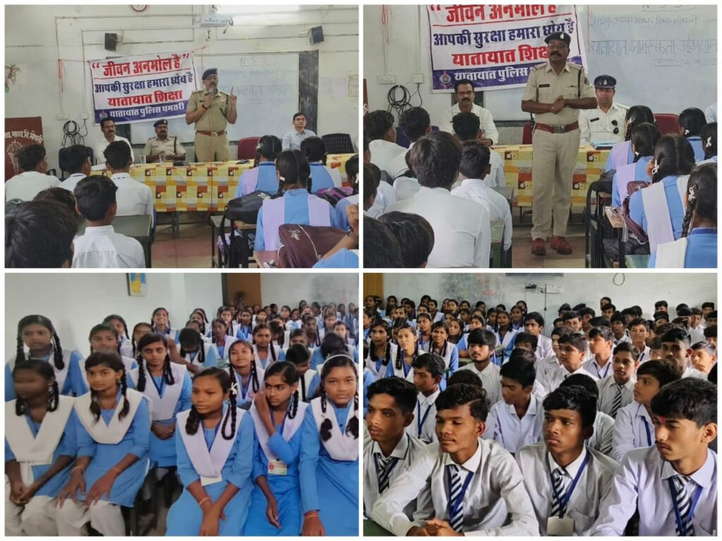 छात्र-छात्राओं को दृष्टांत के माध्यम से लक्ष्य बनाकर लक्ष्य अनुरूप अनुशासित रहकर सफलता प्राप्त करने अभिप्रेरित कर यातायात नियमावली पाम्पलेट वितरण किया गया।